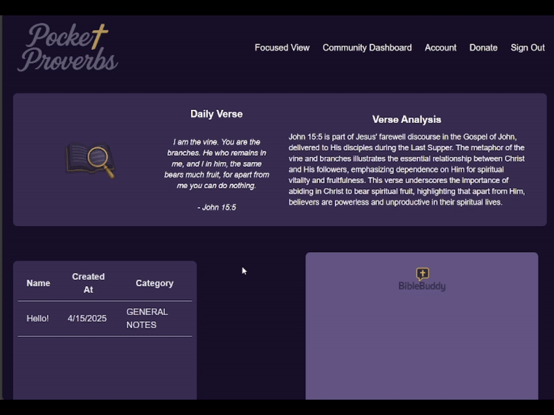 By leveraging the computational power of cutting-edge AI systems, PocketProverbs will allow you to expedite your Bible study process, allowing you to spend less time planning and more time reading Scripture.