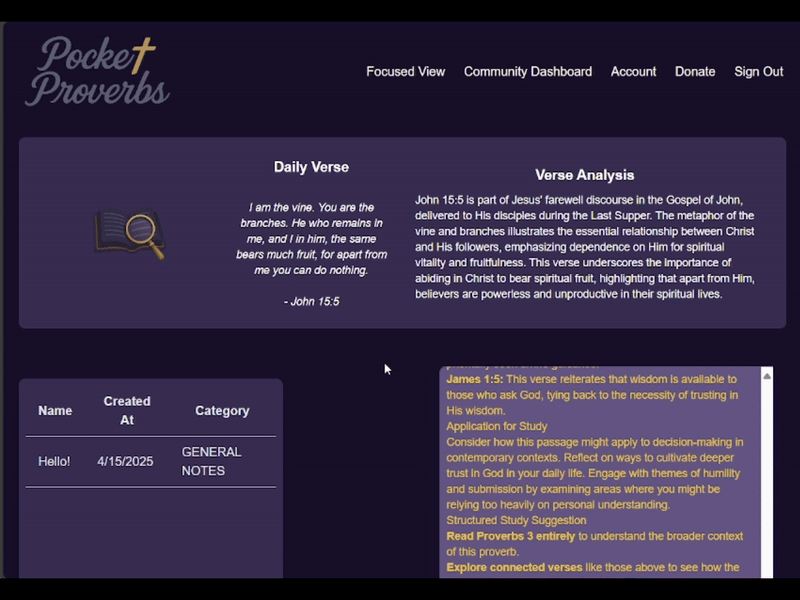 The Bible is rich with wisdom, history, and divine truth. PocketProverbs is being designed to help you explore scripture more deeply by providing historical context, cross-referenced insights, and structured study plans - all in one place.